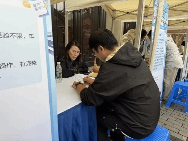 讲座结束后,同学们有序前往京畿路沿街的外场招聘区域,这里聚集了镇江优质企业,同学们带着简历参与了线下招聘会,体验真实招聘场景。